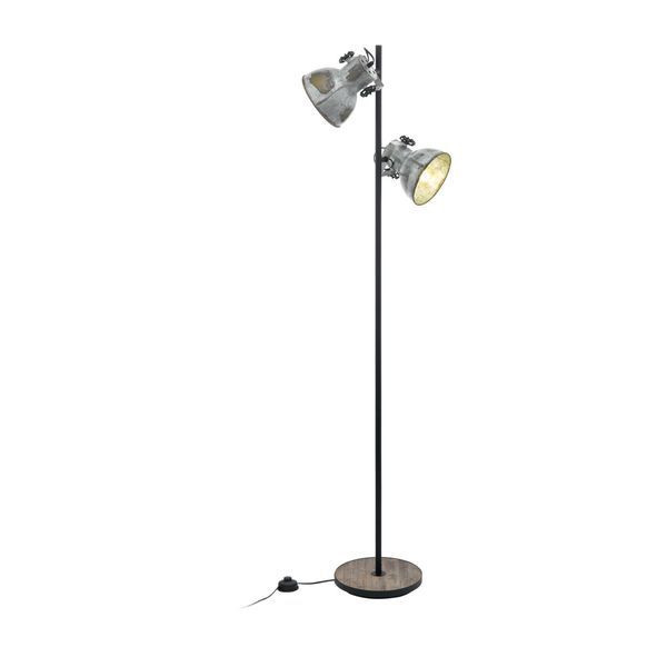 Die Stehleuchte BARNSTAPLE besteht aus einem schwarzen Metall-Fuß mit einer braunen, runden Platte in Holzdekor-Optik und einem umliegenden Metallband in Schwarz. Die zwei beweglichen Leuchtenköpfe im verzinkten Used-Look und die jeweils seitlich daran angebrachten Feststellschrauben in Schwarz runden das rustikale Design der Leuchte ab. Ein bequemes Ein- und Ausschalten ist über einen Fußtrittschalter am Kabel möglich. Die Stehlampe fügt sich nahtlos in den Industrial-Trend ein und ist dank der schwenkbaren Leuchtenköpfe optimal für jeden Raum geeignet – egal ob im Schlafzimmer, Wohnzimmer, Esszimmer oder im Flur. Die abgebildeten Filament-Leuchtmittel sind nicht im Lieferumfang enthalten. Geeignet ist die Leuchte für jedes Leuchtmittel mit E27-Sockel.