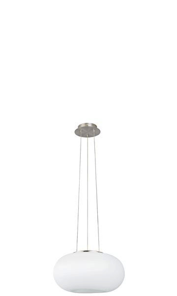 Die Pendelleuchte OPTICA ist aus einem runden, organisch-geformten Opalglas-Lampenschirm in Weiß mit einem Durchmesser von 35 cm gefertigt. Kombiniert wurde dieser mit einem nickel-matten Baldachin und drei gleichfarbigen Metall-Seilen. Die Hängelampe fügt sich nahtlos in moderne Einrichtungen ein und bietet eine stilvolle Beleuchtung im Wohnzimmer oder Esszimmer. Die Leuchtmittel sind nicht im Lieferumfang enthalten. Geeignet ist die Pendellampe für jedes Leuchtmittel mit E27-Sockel.