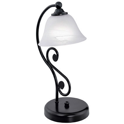 Die Tischleuchte MURCIA besteht aus einem schwarzen, geschwungenen Metall-Fu?, der mit einem runden Lampenschirm aus wei?em Alabaster-Glas kombiniert wurde. Ein bequemes Ein- und Ausschalten ist ?ber einen Schalter am Kabel m?glich. Die Tischlampe im klassischen Look f?gt sich hervorragend in Einrichtungen im Landhausstil ein und bietet eine wohnliche Beleuchtung im Schlafzimmer, Wohnzimmer oder Flur. Das Leuchtmittel ist nicht im Lieferumfang enthalten. Geeignet ist die Leuchte f?r jedes Leuchtmittel mit E27-Sockel.