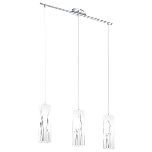 Die Pendelleuchte RIVATO besteht aus drei weißen Glas-Zylindern mit dekorativen Metall-Elementen in Chromfarben, die an Grashalme erinnern. Abgehängt wurden diese von einem länglichen, chromfarbenen Metall-Baldachin. Die zeitlose Pendellampe fügt sich nahtlos in moderne Einrichtungen ein. Sie bietet eine stilvolle Beleuchtung für jeden Raum – egal ob im Wohnzimmer oder Esszimmer. Die Leuchtmittel sind nicht im Lieferumfang enthalten. Geeignet ist die Leuchte für jedes Leuchtmittel mit E27-Sockel.
