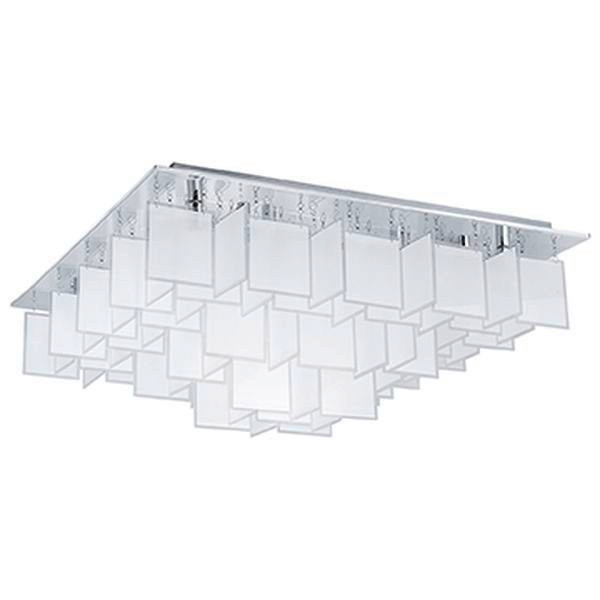 Die Deckenleuchte CONDRADA 1 ist aus einer Vielzahl an aneinandergereihten satinierten Glas-Pl?ttchen in Wei? mit einer quadratischen chromfarbenen Metall-Basis gefertigt. Die Deckenlampe f?gt sich mit ihrer Gr??e von 77 x 77 cm elegant in einen modernen Wohnstil ein und bietet eine stimmungsvolle Beleuchtung f?r jeden Raum ? egal ob im Wohnzimmer, Esszimmer oder Schlafzimmer. Die Halogen G9-Leuchtmittel sind im Lieferumfang enthalten und spenden angenehmes warmwei?es Licht.