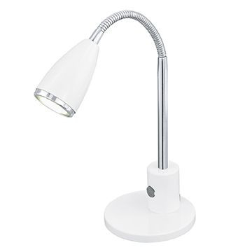 Die LED Schreibtischleuchte FOX ist aus weißem sowie chromfarbenem Metall mit einem beweglichen Leuchtenhals gefertigt. Dank des flexiblen Leuchtenhalses ist im Handumdrehen eine optimale sowie gezielte Ausleuchtung Ihres Arbeitsplatzes möglich. Ein bequemes Ein- und Ausschalten ist über den Wippschalter am Leuchtenfuß möglich. Die Schreibtischlampe bietet mit ihrem zeitlosen Design eine praktische Beleuchtung an Ihrem Arbeitsbereich – ob im Büro oder im Home Office am Schreibtisch. Das LED GU10-Leuchtmittel ist im Lieferumfang enthalten und spendet angenehmes, warmweißes Licht.