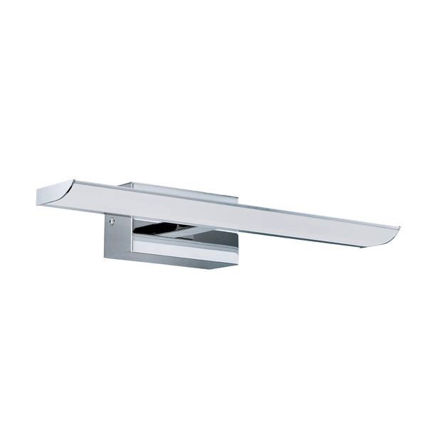 Die LED Spiegelleuchte TABIANO ist aus chromfarbenem Metall mit einer Leuchtfläche aus weißem Kunststoff gefertigt. Die integrierten LEDs spenden helles, neutralweißes Licht. Die Wandlampe fügt sich mit ihrer Länge von 40,5 cm nahtlos in moderne Einrichtungen ein und bietet eine stilvolle Beleuchtung im Bad über dem Spiegel.