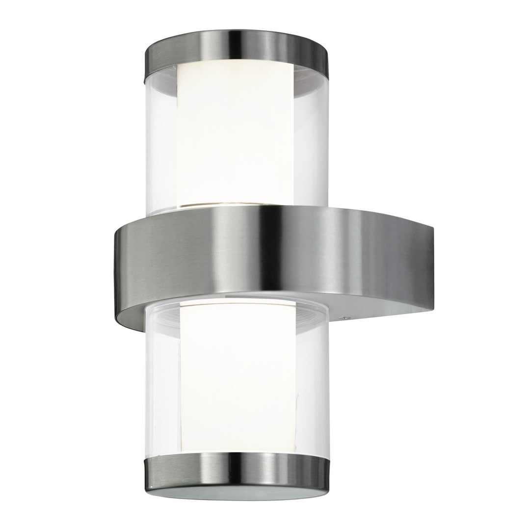 Die LED Außen-Wandleuchte BEVERLY besteht aus einer Edelstahl-Aufhängung, an der oben und unten zylinderförmige klare Kunststoff-Gläser angebracht wurden. Im Inneren befinden sich weiße Kunststoff-Zylinder, die das Licht der integrierten warmweißen LEDs harmonisch nach Außen strahlen lassen. Zudem ist diese Leuchte spritzwassergeschützt (IP44) und ermöglicht einen bedenkenlosen Einsatz im Außenbereich. Dank des zeitlosen Designs fügt sie sich in jeden modernen Outdoor-Bereich ein.