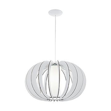 Die Pendelleuchte STELLATO 3 ist mit einem runden Lampenschirm aus weißen Holz-Lamellen gefertigt, der von einem nickel-matten Baldachin abgehängt wurde. Der innenliegende weiße Glas-Zylinder rundet den modernen Look der Leuchte ab und sorgt für eine angenehme Beleuchtung. Die Hängelampe fügt sich mit ihrem Durchmesser von 40 cm nahtlos in moderne Einrichtungsstile ein und bietet eine wohnliche Beleuchtung im Wohnzimmer oder im Esszimmer über dem Esstisch. Das Leuchtmittel ist nicht im Lieferumfang enthalten. Geeignet ist die Leuchte für jedes Leuchtmittel mit E27-Sockel.