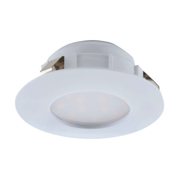 Die LED Einbauleuchte PINEDA ist aus weißem Kunststoff gefertigt. Sie hat einen Durchmesser von 78 mm sowie eine Einbautiefe von 35 mm und spendet dank der integrierten LEDs angenehmes warmweißes Licht. Der Einbauspot fügt sich nahtlos in nahezu jeden Wohnraum ein, beispielsweise in der Küche, im Wohnzimmer oder Flur. Dank des Spritzwasserschutzes (IP44) ist ebenso ein bedenkenloser Einsatz im Badezimmer möglich. Für den Einbau wird ein Ausschnitt von Ø 65 mm benötigt.