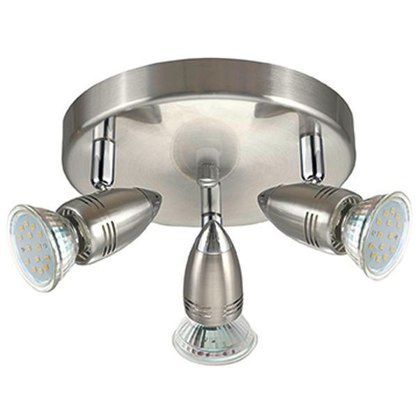Die LED Deckenleuchte MAGNUM-LED ist aus einer runden Metall-Basis in Nickel-Matt gefertigt, die mit drei beweglichen Spots und chromfarbenen Details kombiniert wurde. Die mitgelieferten GU10 Leuchtmittel spenden angenehmes warmweißes Licht und bieten dank der flexiblen Spots eine gezielte Ausleuchtung im Raum. Der Deckenspot im zeitlosen Design fügt sich hervorragend in verschiedene Wohnstile ein – egal ob in der Küche, im Wohnzimmer, Schlafzimmer oder Flur.