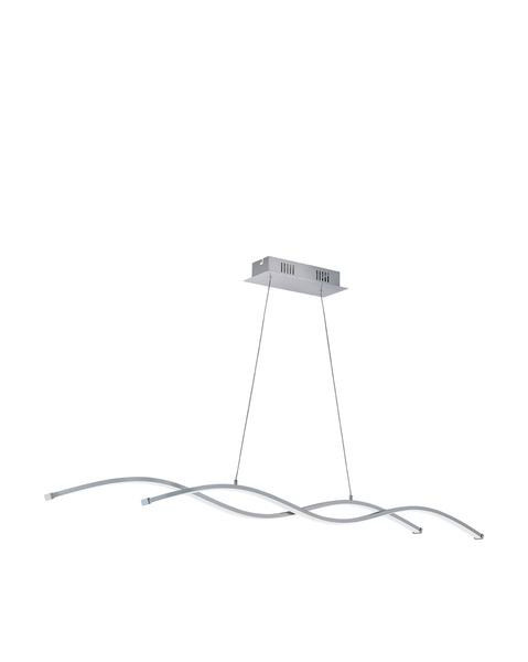 Die Pendelleuchte LASANA 2 ist aus chromfarbenem Metall mit zwei leicht wellenförmigen und zueinander versetzten LED Profilen gefertigt. Die integrierten LEDs unter den weißen Kunststoff-Abdeckungen spenden angenehmes, warmweißes Licht. Die Hängelampe mit einer Länge von 120 cm fügt sich nahtlos in minimalistische und moderne Einrichtungsstile ein. Dank ihres ansprechenden Designs ist sie ein Highlight in Ihrem Wohnraum – egal ob im Wohnzimmer oder im Esszimmer beispielsweise über einem länglichen Esstisch.