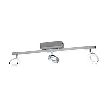 Die LED Deckenleuchte CARDILLIO 1 ist aus chromfarbenem Metall mit drei ringförmigen Spotköpfen gefertigt. Zudem befindet sich eine längliche Leuchtfläche im geradlinigen Leuchtenarm. Die integrierten LEDs unter den satinierten Kunststoff-Abdeckungen spenden angenehmes warmweißes Licht. Der Deckenspot fügt sich nahtlos in den modernen Trend ein und bietet Ihnen dank der schwenkbaren Leuchtenköpfe die Möglichkeit, einzelne Lichtakzente im Raum zu setzen – egal ob in der Küche, im Wohnzimmer, Schlafzimmer, oder Flur.