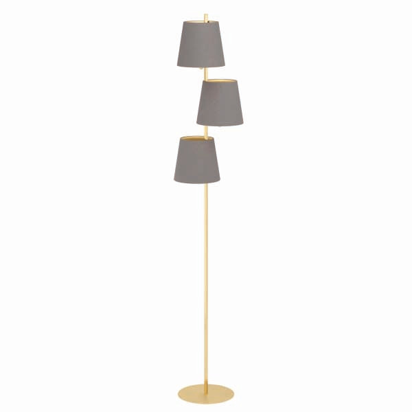 Die Stehleuchte ALMEIDA 2 besteht aus einem Metall-Fuß in Messing-Gebürstet, an dem drei konische Textilschirme in Cappuccinofarben angebracht wurden. Die Kombination der Schirme mit der folierten Innenseite in Messing-Gebürstet sorgt für einen reizvollen und zugleich harmonischen Look. Ein bequemes Ein- und Ausschalten ist über einen Fußtrittschalter am Kabel möglich. Die Stehlampe im 60er Jahre Retro-Chic lässt sich optimal in moderne Einrichtungssile integrieren und bietet eine wohnliche Beleuchtung im Wohnzimmer, Schlafzimmer oder Esszimmer. Die Leuchtmittel sind nicht im Lieferumfang enthalten. Geeignet ist die Leuchte für jedes Leuchtmittel mit E27-Sockel.