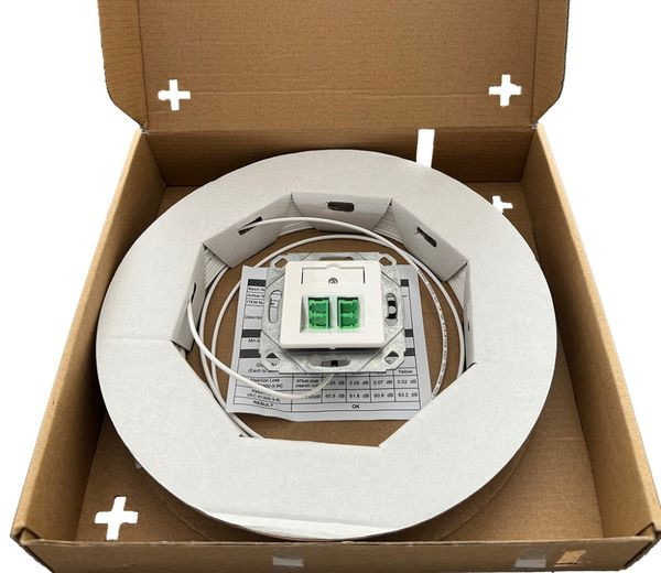 Diese vorkonfektionierte Anschlussdose mit einem Einbaumaß von nur 35 mm ist so konzipiert, dass sie sowohl in Hohlwand- als auch in Schalterdosen verbaut werden kann. Die Kabelzuführung erfolgt flexibel von hinten oder den Seiten. Ausgestattet mit zwei LC-Duplex-Kupplungen inklusive Shutter, wird die Anschlussdose komplett vorkonfektioniert und mit einer Abwickelvorrichtung geliefert.
