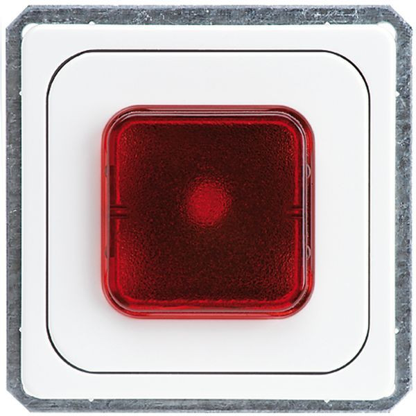 Lichtsignal E 10, Farbe reinweiß mit Zentralplatte, roter Haube und Glimmlampe für Einbaudosen mit Schraubbefestigung.