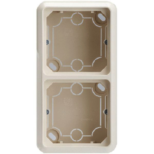 Aufputzgehäuse 2-fach zur Aufnahme der UP-Geräte bei UP-Montage Farbe: perlweiß.
