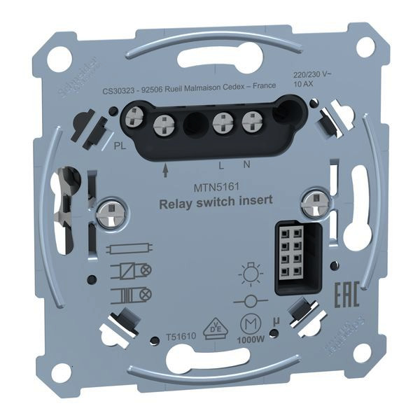 Für ohmsche, induktive und kapazitive Lasten wie Glühlampen, Energiesparlampen, NV Halogenbeleuchtung mit konventionellem Trafo, elektronische Trafos, Leuchtstofflampen. Mit Schraubklemmen. Mit Krallen- und Schraubbefestigung. Funktionen: Schalten von einem Ausgang. Es wird durch das Modul die Art und Weise festgelegt, wie die Funktion des Einsatzes genutzt wird. Externe Ansteuerung über einen PlusLink Eingang. Nennspannung: AC 220/230 V, 50/60 Hz. Nennstrom: max. 10 AX, cosf 0,6, Ausgänge: 1 x Schließer, Max. Schaltleistung pro Kanal:?Glühlampen: 2200 W, HV-Halogenlampen: 2000 W, NV-Halogenlampen mit gewickeltem Trafo: 500?VA, Elektronische Trafos: 1050?W. Kapazitive Last: 10 A, 140 µF, Energiesparlampen: 100 VA, Motorlast: 1000?VA, Neutralleiter: erforderlich (3 Leitersystem), Anschlussquerschnitt: max. 2x2,5 mm², Zu komplettieren mit: Wiser Taster-Modul, 1fach JOY MTN5113-0300. Zeitschaltuhr-Modul Standard JOY ELG17530x, Zeitschaltuhr-Modul JOY ELG17531x, Zubehör: PlusLink Verteiler (3 Phasen) MTN5130-0001, PlusLink-Erweiterung CCTDT5130, Mechanische Taster. Sender: Nebenstelle Plus, 1fach JOY MTN5119-0300, Zentralstellen-Einsatz MTN5190-0000 Hinweis: Alle Steuerungsfunktionen sind im Modul enthalten. Ein Einsatz ohne aufgestecktes Modul ist funktionslos.