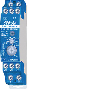 1 Schließer + 1 Öffner potenzialfrei 16A/250V AC, 230V-LED-Lampen bis 200W, Glühlampen 2000W. Stand-by-Verlust nur 0,03-0,4 Watt. Prioritäten der Zentralsteuerung wählbar. Reiheneinbaugerät für Montage auf Tragschiene DIN-EN 60715 TH35. 1 Teilungseinheit = 18mm breit, 58mm tief. Modernste Hybrid-Technik vereint die Vorteile verschleißfreier elektronischer Ansteuerung mit der hohen Leistung von Spezialrelais. Örtliche Universal-Steuerspannung 12..230V UC. Mit zusätzlichen Steuereingängen zentral ein und zentral aus für 8..230V UC, vom örtlichen Steuereingang galvanisch getrennt. Versorgungsspannung wie die örtliche Steuerspannung. Sehr geringes Schaltgeräusch. Glimmlampenstrom ab 110V Steuerspannung bis 50mA in den Schalterstellungen 1 bis 3 und 5 bis 7. Durch die Verwendung eines bistabilen Relais gibt es auch im eingeschalteten Zustand keine Spulen-Verlustleistung und keine Erwärmung hierdurch. Nach der Installation die automatische kurze Synchronisation abwarten, bevor der geschaltete Verbraucher an das Netz gelegt wird. Maximalstrom als Summe über beide Kontakte 16A bei 230V. Mit Ansteuerungs-LED. Diese blinkt nach 15 Sekunden bei blockiertem örtlichen Taster, nicht in den Drehschalter-Stellungen 4 und 8. Mit dem oberen Drehschalter kann dieser Stromstoßschalter ganz oder teilweise von der Zentralsteuerung ausgenommen werden: ZE+ZA = Zentral ein und zentral aus sind wirksam, wobei für zentral ein eine Ansprechverzögerung von 0, 1, 2 oder 3 Sekunden gewählt werden kann. ZE = Nur zentral ein ist wirksam, wobei eine Ansprechverzögerung von 0, 1, 2 oder 3 Sekunden gewählt werden kann. ZA = Nur zentral aus ist wirksam. ZE+ZA = Keine Zentralsteuerung ist wirksam. Mit dem unteren Drehschalter können verschiedene Prioritäten eingestellt werden. Diese legen fest, welche anderen Steuereingänge gesperrt sind, solange ein Steuereingang dauererregt ist. Außerdem wird hierbei entschieden, wie sich der Stromstoßschalter ES12Z bei Ausfall und Wiederkehr der Versorgungsspannung verhalten soll: In den Schalterstellungen 1 bis 4 bleibt die Schaltstellung bei dem Ausfall unverändert, in den Schalterstellungen 5 bis 8 wird ausgeschaltet. Anliegende Zentralbefehle werden nach der Wiederkehr sofort ausgeführt. OFF = Dauer AUS, ON = Dauer EIN. 1 und 5 = Keine Priorität. Auch bei dauererregten Zentral-Steuereingängen kann örtlich getastet werden. Der letzte Zentralbefehl wird ausgeführt. Dies ist die Einstellung ab Werk. 2 und 6 = Priorität für zentral ein und aus. Örtliches Tasten ist solange wirkungslos. Dauererregung zentral aus hat jedoch Vorrang vor Dauererregung zentral ein. 3 und 7 = Priorität für zentral ein und aus. Örtliches Tasten ist solange wirkungslos. Dauererregung zentral ein hat jedoch Vorrang vor Dauererregung zentral aus. 4 und 8 = Priorität für dauererregten örtlichen Taster. Zentralbefehle werden solange nicht ausgeführt. Ein Glimmlampenstrom ist in diesen Stellungen nicht zugelassen.