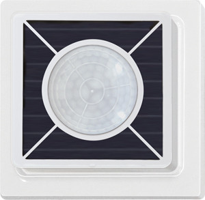 Funk-Außen-Bewegungs-Helligkeitssensor reinweiß glänzend für Aufputzmontage, 84x84x39?mm, Schutzart IP54. Mit Solarzelle. Smart Home Sensor.