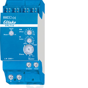 Funk-Powerline-Tunnelgateway. Uni- und Bidirektional. Stand-by-Verlust nur 0,4 Watt. Reiheneinbaugerät für Montage auf Tragschiene DIN-EN 60715 TH35. 2 Teilungseinheiten = 36mm breit, 58mm tief. Versorgungsspannung: 230V. Anschluss an den ELTAKO-RS485-Bus. Querverdrahtung Bus und Stromversorgung mit Steckbrücke. Dieses Gateway überträgt RS485-Bustelegramme mit Powerline über große Entfernungen über das Stromnetz. Hierzu sind mindestens 2 Stück FPLT14 erforderlich. Unidirektional können bis zu 10 FPLT14 die Bustelegramme ihrer FAM14/FTS14KS-Installation mit Powerline über das Stromnetz in eine andere FAM14/FTS14KS-Installation über ein dortiges FPLT14 senden. Bis zu 120 Telegramm-IDs einlernen gemäß Bedienungsanleitung, auch mit PCT14. Bidirektional können 2 FPLT14 die Bustelegramme von 2 FAM14/FTS14KS-Installationen mit Powerline über das Stromnetz austauschen. Bis zu 120 Telegramm-IDs einlernen gemäß Bedienungsanleitung, auch mit PCT14. Wegen der Übertragungs-Verzögerung sind Kurz-Klick-Auswertungen für FUD- und FSB-Aktoren nicht sicher möglich.