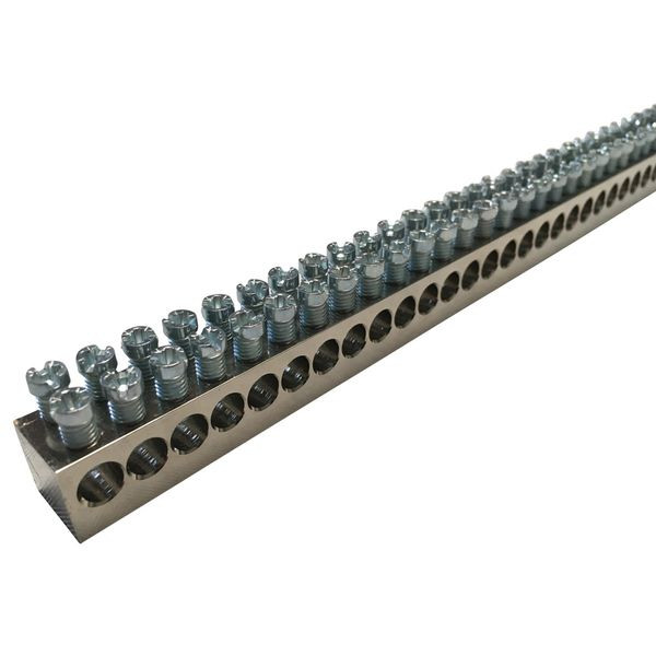 Erdungs- und Nullleiterschiene für die Verbindung von mehreren Erdungsleitern. Erdungs- und Nullleiterverteilerschiene, vernickelt EB2X130.