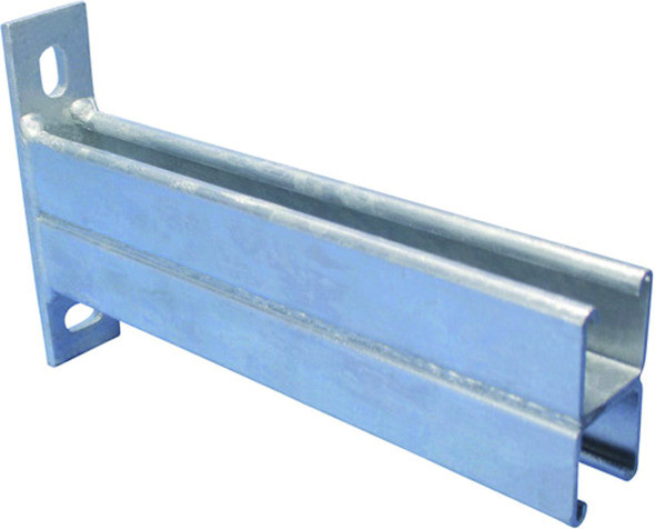 Konsole, feuerverzinkt, rückseitig geschweißte Rinne, 82 mm x 41 mm x 2,5mm 1.050 mm lang. Rückplatte mit zwei Langbohrungen zur einfachen Justierung.