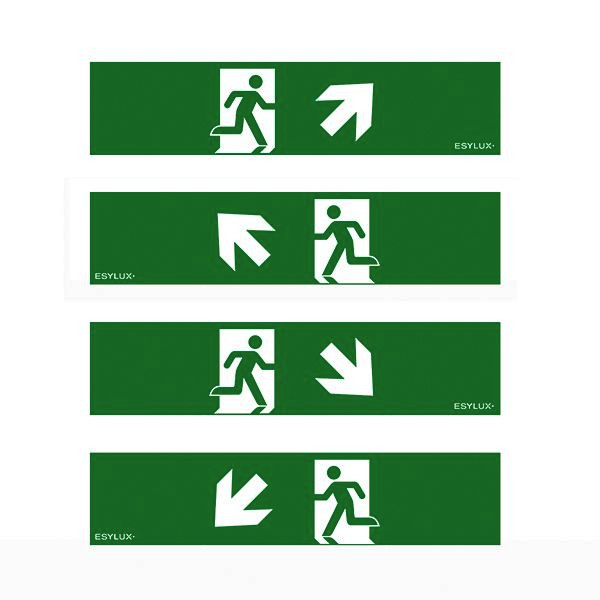 Piktogramm-Satz für Einzelbatterie-Notleuchten der Serie SLA. Satz bestehend aus: 4 selbstklebenden Piktogramm-Folien mit 14 m Erkennungsweite (Pfeil oben rechts, oben links, unten rechts und unten links).