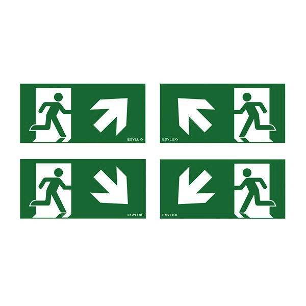 Piktogramm-Satz für Einzelbatterie-Notleuchten der Serie SLF. Satz bestehend aus 4 Piktogramm-Folien mit Erkennungsweite 30 m (DIN/EN) (Pfeil rechts oben, links oben, rechts unten und links unten).