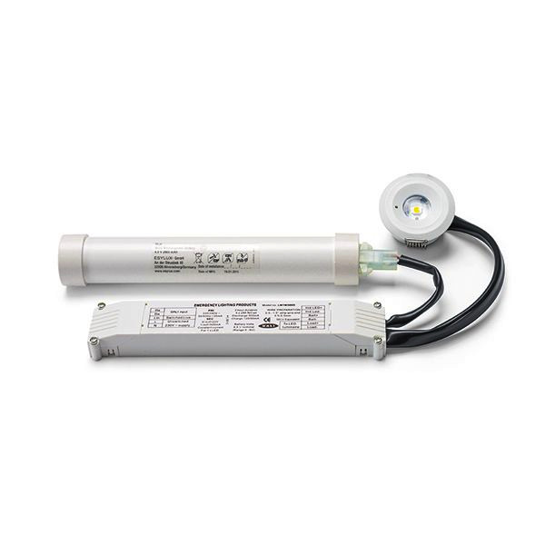 Einzelbatterie-Notleuchte mit 3 h Notlichtdauer für Deckeneinbaumontage . Funktionskontrolle und Selbstüberwachung , Ständige Ladungsüberwachung, Automatischer, wöchentlicher Funktionstest und jährlicher Betriebsdauertest, Anzeige der Testergebnisse durch farbige LEDs (grün/rot). Betrieb wahlweise in Dauer- oder Bereitschaftsschaltung möglich. Lichtaustritt nach unten und optimiert zur Ausleuchtung von Räumen. Inklusive NiCd-Akku mit verpolungssicherem Steckanschluss. Anschluss mittels Steckklemmen (durchverdrahtbar). Gehäuse aus UV-stabilisiertem Polycarbonat.