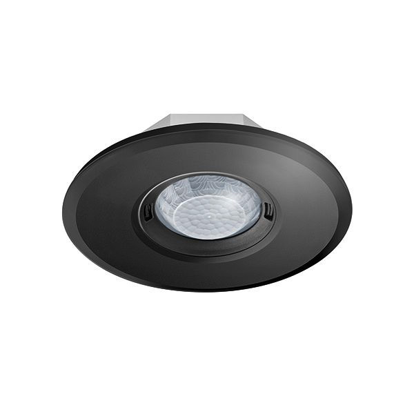 | Kurzbeschreibung | Decken-Präsenzmelder 360°, Unterputz, flache Bauweise, Reichweite ca. Ø 8 m, fernbedienbar, rund schwarz |