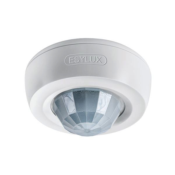 Bewegungsmelder mit 360° Erfassungsbereich für die Deckenmontage. Reichweite von bis zu 24 m im Durchmesser bei einer empfohlenen Montagehöhe von 3 m für den Einsatz in kleinen Räumen und Durchgangsbereichen mit sehr geringem oder keinem Tageslichtanteil. 10 A Hochleistungsrelais. Nulldurchgangsschaltung: Verlängerung der Lebensdauer von Relais und Leuchtmittel bei elektronischen Vorschaltgeräten (z.B. Fluoreszenzleuchten, LED) durch schonendes Schalten im Nulldurchgang.. Werkseinstellung für eine sofortige Betriebsbereitschaft. Automatische Lichtsteuerung. Zusätzlicher Tastereingang. Fernbedienbar. Standardausführung als Aufputzgerät. Erweiterung des Erfassungsbereichs durch Parallelschaltung.