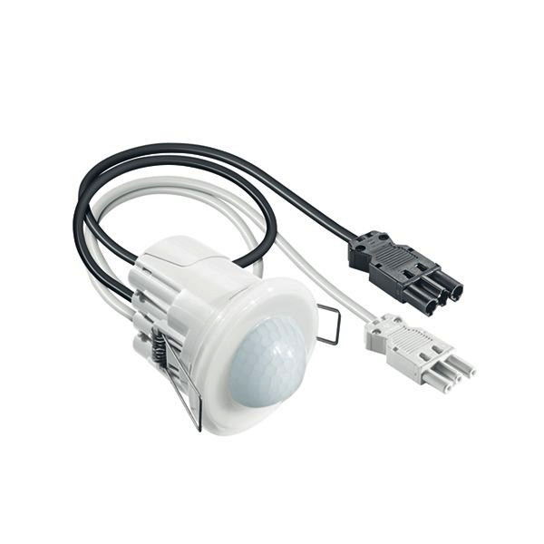 Deckeneinbau-Bewegungsmelder mit 360° Erfassungsbereich zum bedarfsgerechten Schalten der Beleuchtung, somit spürbare Verringerung der Energiekosten. Reichweite von bis zu 8 m im Durchmesser für den Einsatz in kleinen Räumen, Durchgangsbereichen, Toiletten, kleinen Büros oder Fluren mit keinem oder geringem Tageslichtanteil. 1,0 m vorkonfektionierte GST18i3-Zu- und Ableitung. 16 A Hochleistungsrelais (Wolfram-Vorlaufkontakt), speziell geeignet zum Schalten von kapazitiven Lasten wie z. B. EVGs, parallelkompensierte Leuchtstofflampen, Kompakt-Leuchtstofflampen, Energiesparlampen. Fest hinterlegtes Werksprogramm für eine sofortige Betriebsbereitschaft. Einfache Programmierung per Fernbedienung mit "blue mode" Technologie. Geringe Baugröße mit einem Deckenausschnitt von Ø 68 mm macht den Melder unauffällig und doch effektiv in der Anwendung. Zusätzlicher Tastereingang zum individuellen manuellen Schalten der Beleuchtung. Erweiterung des Erfassungsbereichs durch Parallelschaltung von max. 8 Meldern. Gezielte Ausblendung von Bereichen mittels beiliegender Linsenmaske.