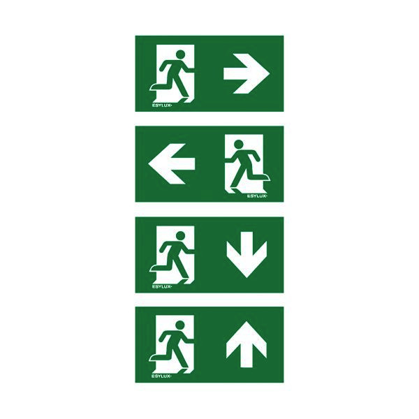 Piktogramm-Satz für Einzelbatterie-Notleuchten der Serie SLX 24 High Cover. Satz bestehend aus 4 Piktogramm-Folien mit Erkennungsweite 24 m (DIN/EN) (Pfeil rechts, links, unten und oben)..