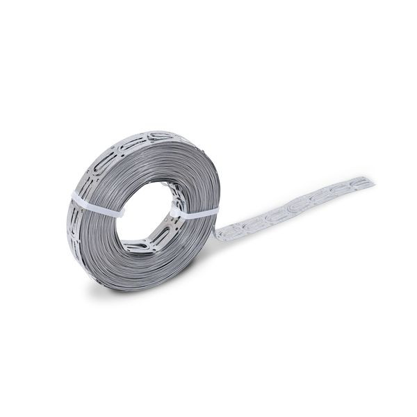 Metallflachband mit Fixierungslaschen alle 25 mm, zur einfachen Positionierung von Anschlussleitungen, Rolle: 20 m.