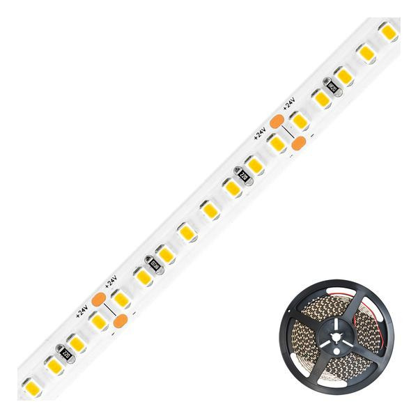 Kürzbarer und flexibler LED-Strip mit hochleistungs LED-Chips. Die auf diesem Strip verbauten superbright LED-Chips erreichen im Vergleich zu herkömmlichen LED-Chips eine deutlich höhere Lichtausbeute bei gleicher Leistungsaufnahme, bzw. vergleichbare Lichtausbeute bei geringerer Leistungsaufnahme. Dadurch lassen sich die verschiedensten Anwendungen, wie z. B. direkte oder indirekte Beleuchtung für Wohnzimmer, Schlafzimmer, Flur, etc. noch Energiesparender umsetzen. Auch Projekte mit gehobenen Ansprüchen bezüglich der Lichtausbeute lassen sich mit diesen Strips realisieren. Wichtig: Um ein überhitzen des Strips zu vermeiden, darf dieser nur auf Wärmeleitenden Untergründen verbaut werden, vorzugsweise in Aluminiumprofilen. Exaktes Binning erlaubt Farbtoleranzen von maximal +/-50K. Die Lichtausbeute beträgt 3140lm pro Meter.