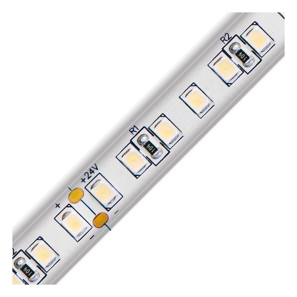 Der LED-Strip kann in jeder Wunschlänge (Angabe in Meter), bis maximal 10m, unter Beachtung des Teilungsmaßes von 50mm konfektioniert werden. Die maximale Einspeiselänge bei einseitiger Einspeisung beträgt 5m. Der konfektionierte Strip wird standardmäßig einseitig mit einer 0,5m langen Anschlussleitung (Kabelquerschnitt: 0,3mm²) ausgeliefert. Wichtig: Um ein Überhitzen des Strips zu vermeiden, darf dieser nur auf wärmeleitenden Untergründen verbaut werden, vorzugsweise auf bzw. in Aluminiumprofilen. Die Lichtausbeute beträgt 1356lm pro Meter.
