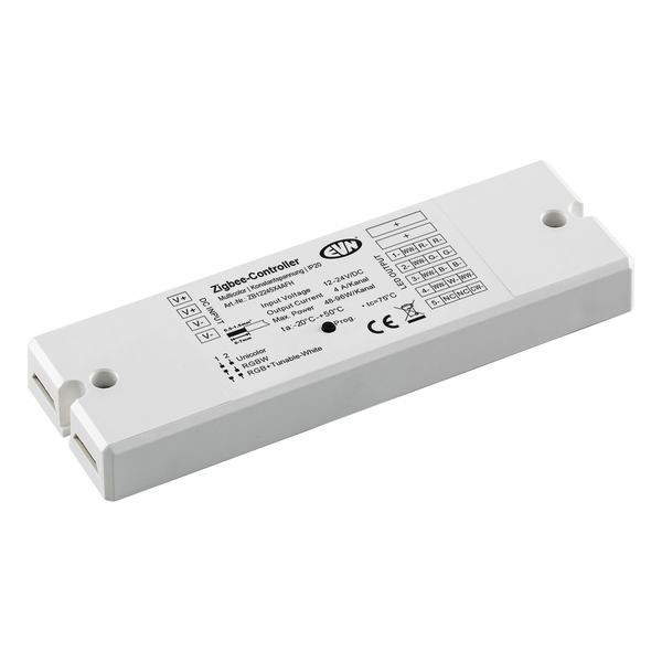 Der ZigBee 3.0 LED-Multicolor-Empfänger kann für Unicolor-, RGB-, RGBW- und RGB+Tunable-White-Leuchten verwendet werden. Die Einstellung der jeweiligen Betriebsart erfolgt über Dipschalter. Geeignet für Leuchten mit einer Betriebsspannung von 12 und 24V/DC. Die tatsächlich zu verwendende Eingangsspannung ist abhängig von der benötigten Spannung der angeschlossenen Leuchten. 1x Eingang, so wie 1x Ausgang für 12-24V/DC und 5x Ausgang (RGBW). Die Schraubklemmen sind für Kabel von 0,5mm² - 1,5mm² geeignet. Technische Daten: ta: -20°C - 50°C, tc: 75°C, max. Ausgangsleistung je Kanal: 4A (48W bei 12V/DC und 96W bei 24V/DC). Die Ansteuerung erfolgt über ZigBee Funk-Sender mit 2,4GHz. Außerdem kann der Empfänger mit dem Busch-Jaeger free@home System gesteuert werden. Um auch größere Anlagen problemlos umsetzen zu können, können mehrere Controller als Master-Slave-Anwendung synchron gesteuert werden.