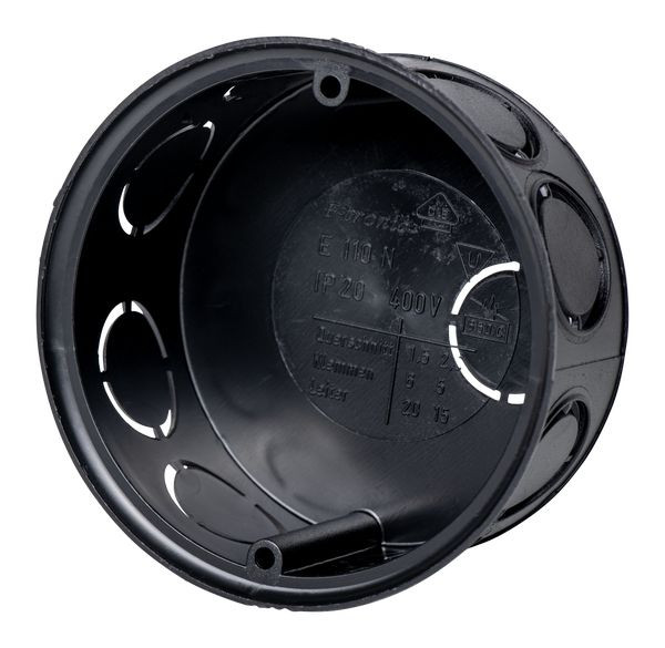 UP Verbindungsdose E110, Durchmesser 72mm, Tiefe 35mm. Farbe schwarz.