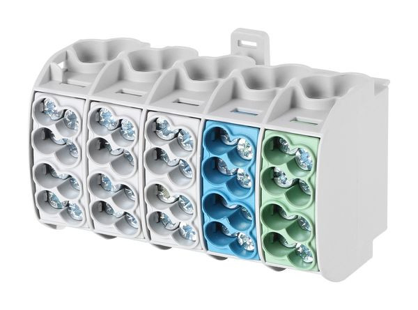 Hauptleitungsabzweigklemme 25mm² (Typ C). Farbe grau/blau/grün. Montageart DIN-Schiene. Anzahl Pole: 4