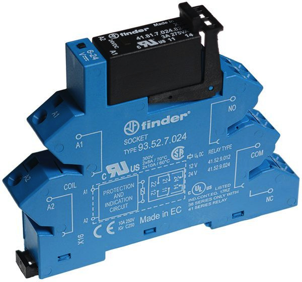 SSR - Koppelrelais für DIN-Schiene mit Zugfederklemmen, 1 SSR-Kontakt 3 A, schaltet beim Nulldurchgang, Kontaktespannung 230 V AC, Spulenspannung 24 V DC , LED und EMV-Entstörung sind in der Fassung integriert