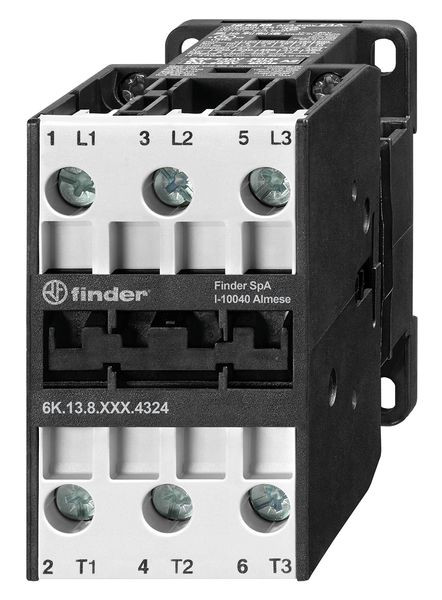 Industrieschütz für Tragschiene 35 mm, 3 Schließer 32 A (400 V – AC 3), Kontaktmaterial AgSnO2, Bemessungsleistung AC3 bei 400 V: 15 kW, Bemessungsleistung AC3 bei 690 V: 18.5 kW, Bemessungsstrom AC1 bei 690 V: 65 A, Spule 24 V AC, Breite 45 mm, Relaisschutzart: IP 20, Hilfsschalter verfügbar (optional)