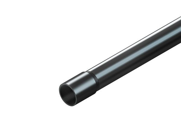 Kurzbeschreibung Gewinderohr, mit 1 aufgeschraubten Muffe, Außen-Ø 20 mm, Länge 3000mm, Stahl lackiert, RAL 9005, schwarz