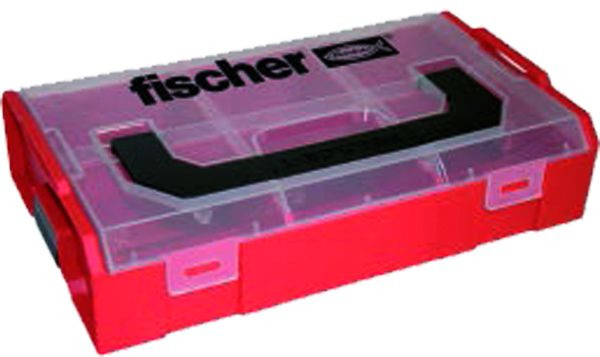 Die FixTainer-Box ist mit Tragegriff und transparentem Deckel ausgestattet. Sie kann fest mit weiteren Boxen verbunden und damit gestapelt werden. Zudem ist sie kompatibel mit dem Sortimo L-Boxx System.
