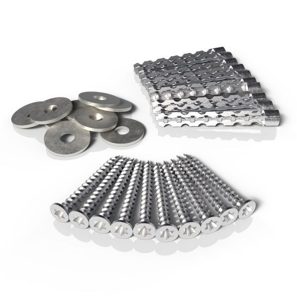 Zubehör für Brandschutzmanschetten AWM II zur Befestigung bestehend aus Metall, Vielzweckdübeln und Schrauben