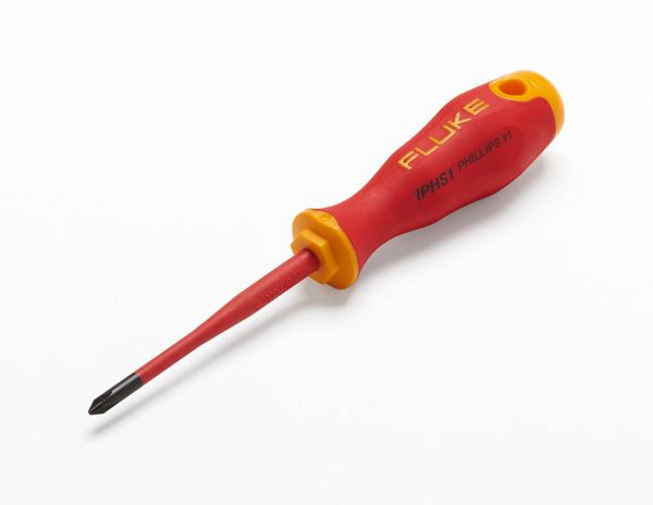 Isolierte Kreuzschlitzschraubendreher von Fluke sind mit einem ergonomischen Griff ausgestattet, der sich an die Hand des Anwenders anpasst. Dies verursacht weniger Belastung und Ermüdung der Hand und ermöglicht ein maximales Anzugsmoment. Der über die ganze Länge reichende schlagfeste Handgriffkern ist mit einem weichen Außenmaterial beschichtet, das eine hohe Griffsicherheit bietet. Eine Aufhängungsöffnung sorgt für zusätzliche Sicherheit. Außerdem verhindert die Gestaltung des Handgriffs ein Wegrollen des Schraubendrehers beim Ablegen. Dank des schlanken isolierten Schafts sind auch schwer zugängliche Stellen gut zu erreichen. Isolierte Kreuzschlitzschraubendreher von Fluke sind für 1000 VAC und 1500 VDC zugelassen. Sie sind deutschem Chrom-Molybdän-Vanadium-Stahl geschmiedet und daher äußerst haltbar.