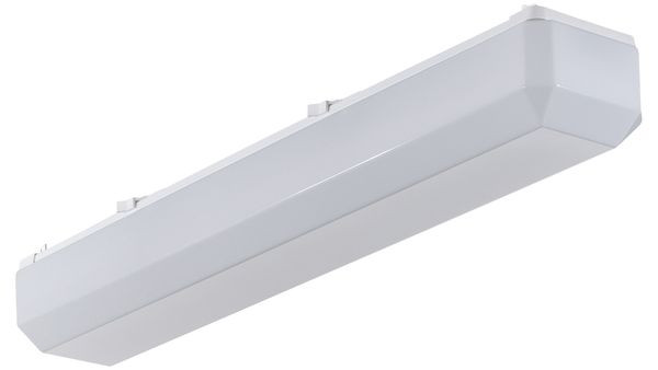 LED-Anbauleuchte, opale Abdeckung mit abgeschrägten Kanten aus Acrylglas (PMMA). Mit einstellbarer Lichtleistung (MultiLumen), im Auslieferungszustand ist der Maximalwert eingestellt. Geeignet für die Montage an Decke und Wand. Leuchtenunterteil aus weiß lackiertem Stahlblech. Schaumstoff-Profildichtung. Eingebauter Geräteträger/Reflektor aus Stahlblech weiß. Riegelverschluss aus Polycarbonat (PC) weiß. 3-polige Anschlussklemme mit Steckkontakt, Durchschleifen möglich. 2 Kabeleinführungen. Zugelassen für den Einsatz im Innenbereich.