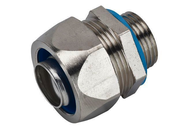 FIPMETAL® Metallverschraubung gerade MS-2-M aus Messing vernickelt, mit metrischem Gewinde, Schutzklasse IP67. Dichtringe für FIPMETAL® Metall-Schutzschläuche GAAR (weiß), DMA (gelb) und DMC (blau) liegen bei.