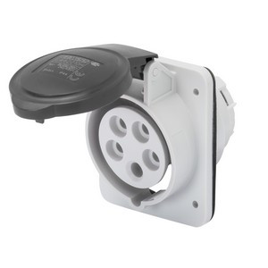 Anbausteckdose fuer industrielle Anwendungen gemaess IEC 60 309 (EN 60 309) Neigung 10° vernickelte Kontakte, Metallteile aus Edelstahl, Kunststoffteile halogenfrei gemaess EN 50 267-2-2, Anschlusstechnik: Schraubklemme, Anschlussquerschnitt 1 - 2,5 mm² feindraehtig / 1,5 - 4 mm² ein- oder mehrdraehtig, , UV Bestaendig, Stossfestigkeit IK09