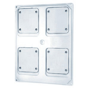 | Kurzbeschreibung | Flanschplatte 211x276x17mm fuer 4 IEC Steckdosen 16/32A grau |