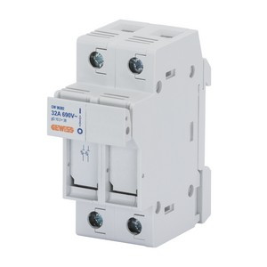 Sicherungslasttrennschalter fuer zylinderische Sicherungen nach EN 60947-3 als Reiheneinbaugeraet. Gebrauchskategorie AC-22B. Anschluss (max): 25 qmm. Die Sicherungseinsaetze sind im Lieferumfang nicht enthalten.