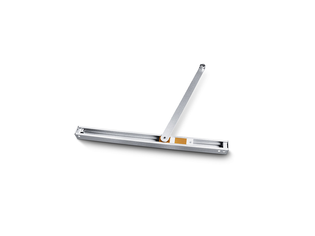 Einfach gegen die Standardgleitschiene austauschbar. Zeitersparnis, weil kein Bodenpuffer installiert werden muss. Mit verschraubtem Gleitstein. Anwendungsbereiche: Einflügelige Türen. Montage auf der Bandseite. Rechte und linke Anschlagtüren. Zur Öffnungsbegrenzung ohne Türstopper.