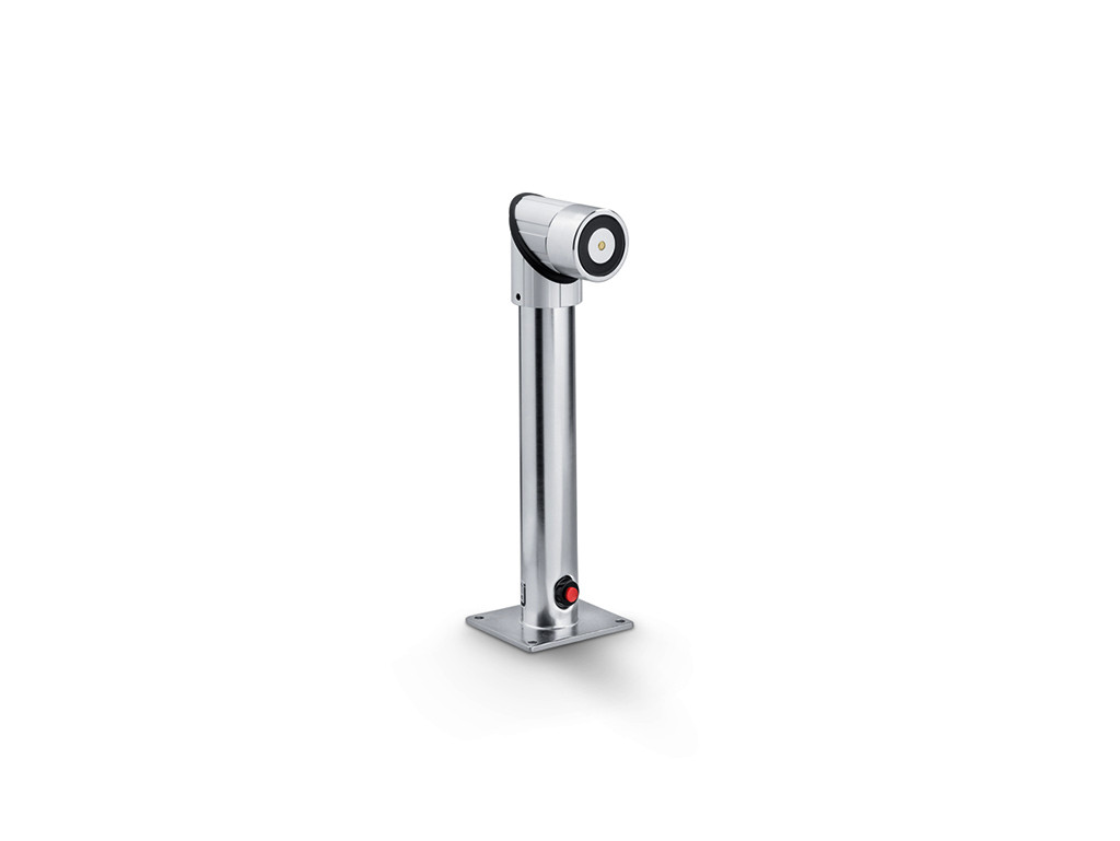 Hohe Haltekraft von 490 N. Verdeckte Kabelzuführung und robustes Design. Anwendungsbereiche: Einsatz für Feststellwinkel bis 180°, ideal für exaktes Feststellen. Einsatz in rauen Umgebungen wie Industriegebäuden. Versammlungs- und Sportstätten mit hohem Publikumsverkehr. Zugelassen für GEZE Feststellanlagen. Wand-, Decken- oder Bodenmontage.