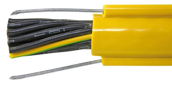 GIFAS-KRANFLEX-05-LEITUNGBeschreibung:- Kran- und Aufzugssteuerleitung- 18 x 1,0 qmm- gelber PVC-Außenmantel- kälteflexible Spezialausführung, mit 2 außenliegenden Stahlseil-Tragelementen, fest mit dem Mantel verbunden